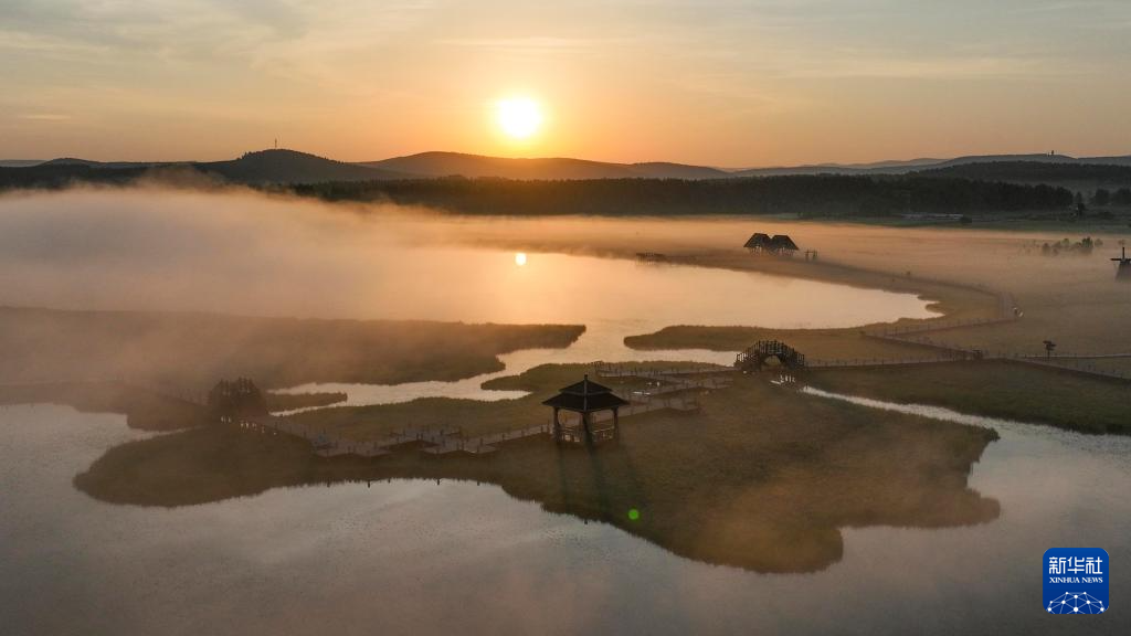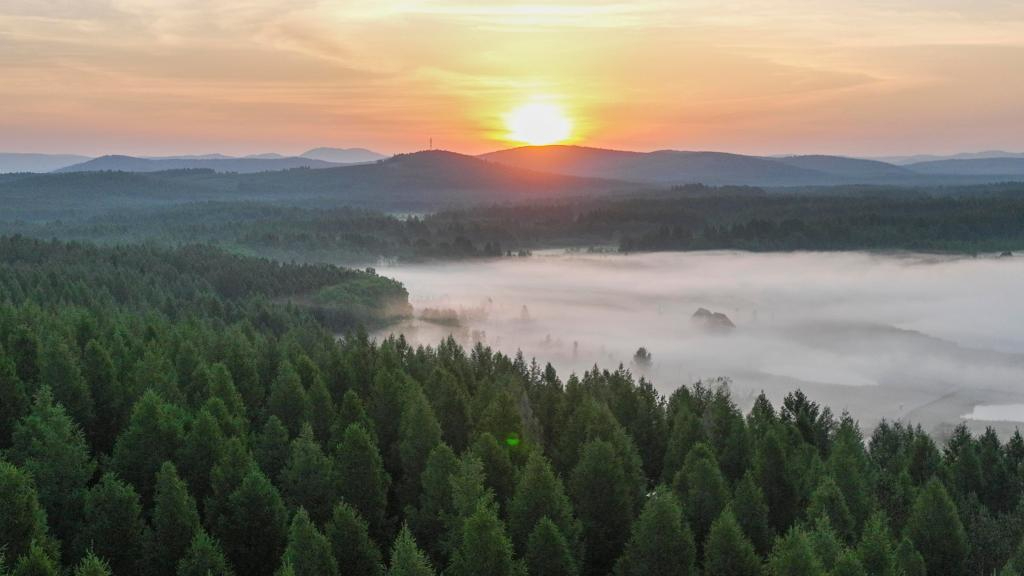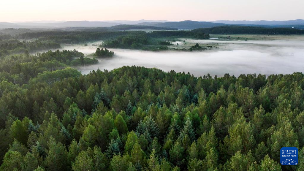 6月24日拍摄的塞罕坝国家森林公园晨景(无人机照片)。