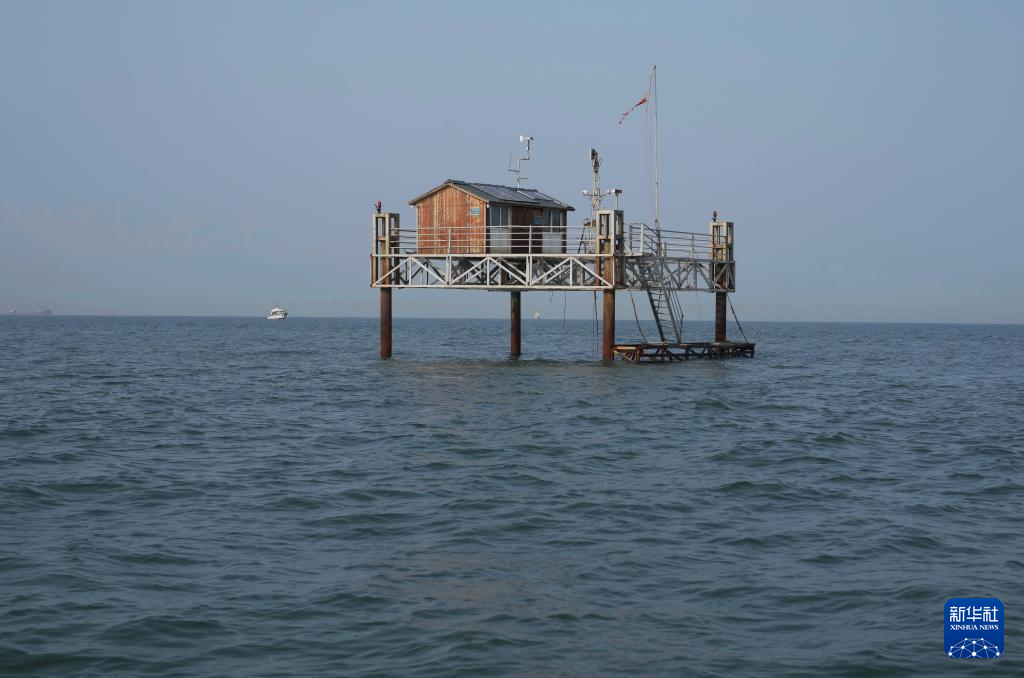 这是唐山祥云湾海洋牧场贝藻礁区生态监测平台(2021年5月12日摄)。