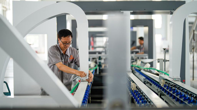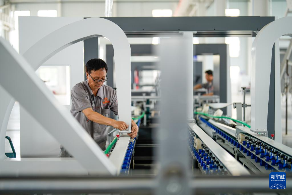 7月13日,河北省玉田县一家印刷包装机械制造企业的工人在生产线上工作。