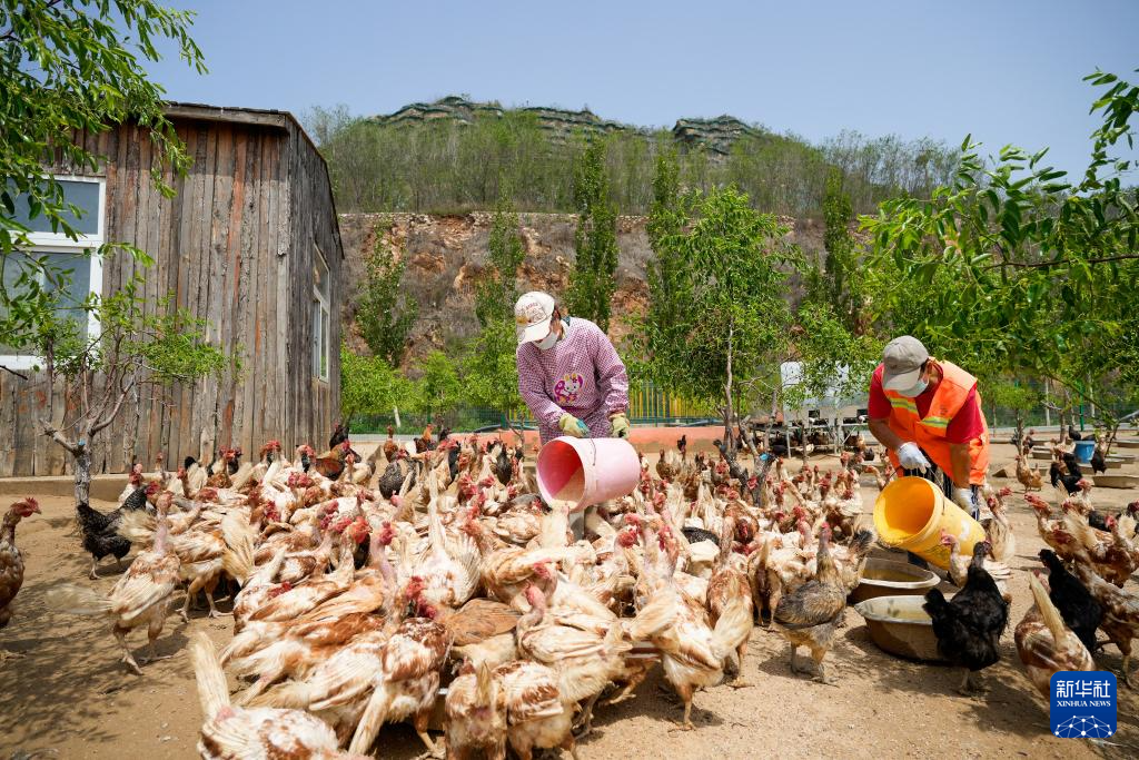 7月14日,工人在河北省唐山市古冶区一处修复矿山后建成的养殖场内工作。