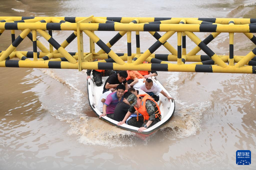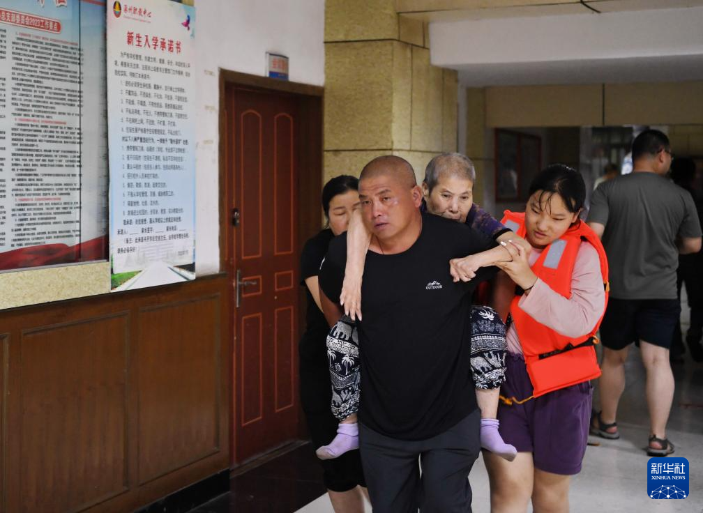8月2日,救援人员在河北省涿州市市区内转移群众。
