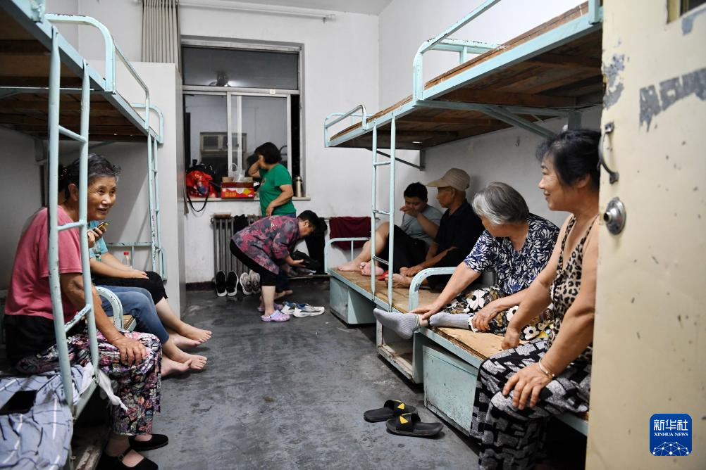 8月1日,安置群众在河北省涿州市职教中心安置点内休息。
