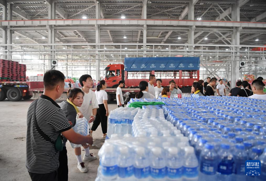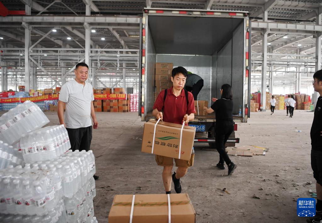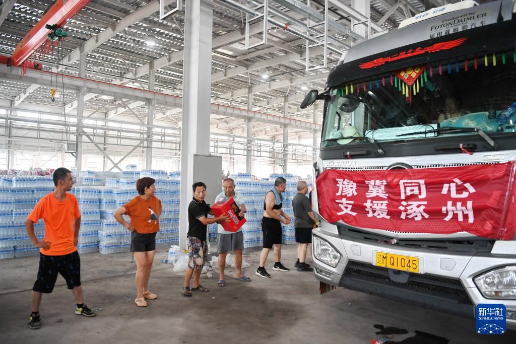 当日,大批来自全国各地的捐赠物资运抵河北涿州,支援当地受灾群众。