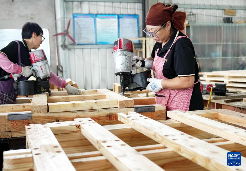 8月20日,工人在唐山市丰南区小集镇钱庄村一家木质包装产品企业的生产车间工作。