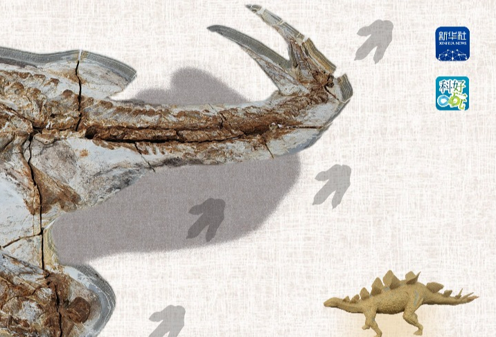 剑龙骨骼化石四周散布着完整的皮肤化石