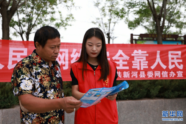志愿者为群众普及网络安全相关知识。新河县委网信办供图