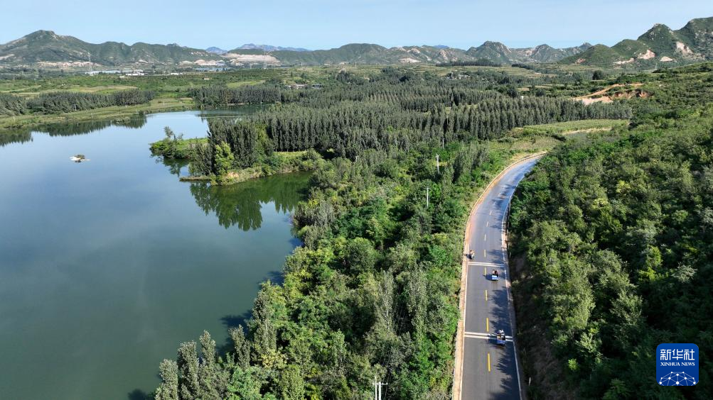 这是9月20日在河北省石家庄市行唐县城寨乡拍摄的一处沿河乡村公路(无人机照片)。