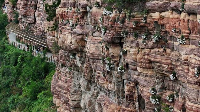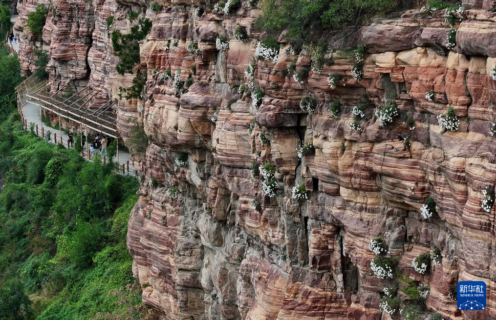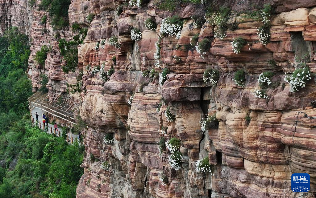 近日,在河北省武安市西部太行山区的悬崖绝壁上,太行菊花进入盛放期,为秋日里的太行山增添了一道靓丽风景。太行菊主要分布于河北、山西、河南等地的海拔500至1200米的太行山峭壁上。