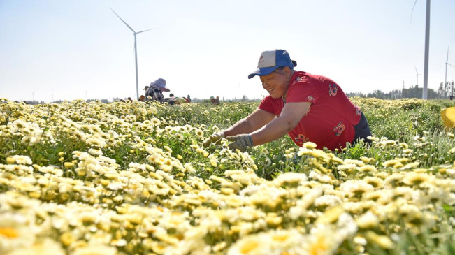 近年来,河北省临西县在推进产业富民过程中,根据当地土壤、气候特点,因地制宜引导农民规模化发展菊花种植,延长菊花种植产业链条,把菊花加工成茶饮、药材等高附加值产品,带动当地农户增收致富。