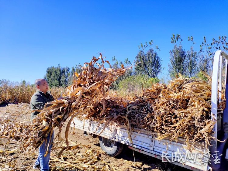 侯东东将砍下的玉米秸秆装车。长城网·冀云客户端记者 祝雪娟 摄