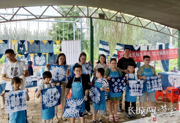 “蓝染是世界上最古老的天然染色技艺,色泽鲜艳的靛蓝取自于马蓝、木蓝等含蓝靛色素的植物,我们的文化工作室主要是为小朋友们普及蓝染文化知识,大家可以一边学习非遗知识一边制作,还可以将作品带回家,更好地亲近大自然。”侯东东说。