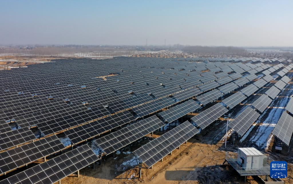 12月28日拍摄的河北秦皇岛昌黎县荒佃庄镇附近的一处光伏发电场(无人机照片)。