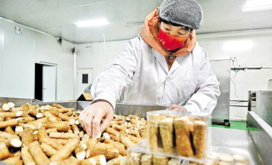 2023年12月20日,位于安平县的梦园河北食品制造有限公司(以下简称“梦园公司”)包装车间内,工人们正将一段段白山药冻干装进包装盒。这些产品将通过物流发往北京、天津的大型商超。