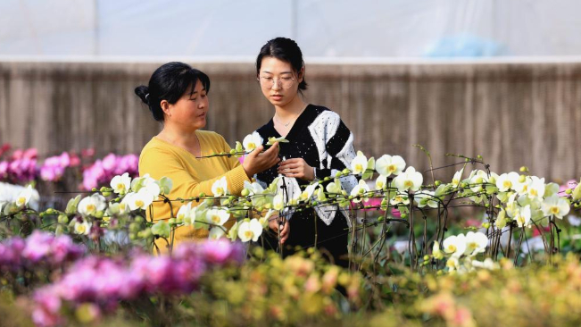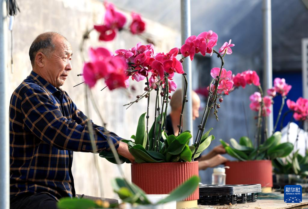 近日,河北省石家庄市无极县各花卉基地的蝴蝶兰竞相绽放,工人忙着管护、装运花卉,供应市场。近年来,无极县因地制宜大力发展特色花卉产业,积极引导花农种植各类花木,有效促农增收,助力乡村振兴。
