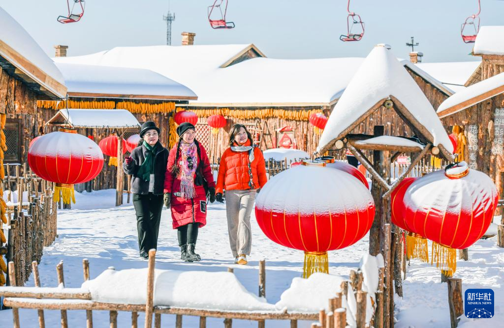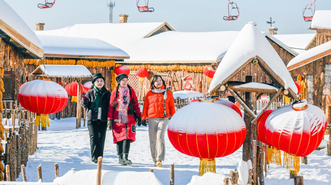 1月27日,游客在河北省遵化市山里各庄的山庄雪乡景区游玩。