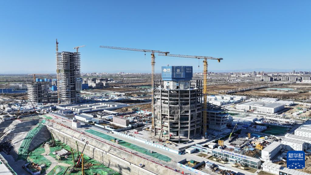 时值冬季,雄安新区启动区塔吊升降、机器轰鸣、钢筋敲击声不绝于耳,工人们顶着寒风高效施工。