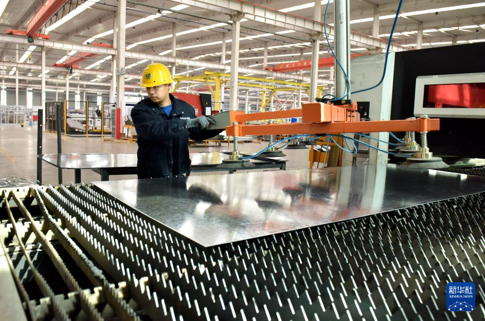3月11日,工人在威县高新区的一家电力设备有限公司生产线上工作。