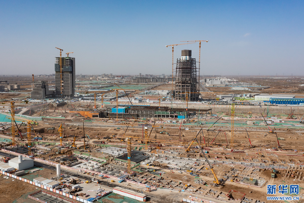 雄安新区城际站及国贸中心项目建设现场塔吊林立。新华网 牛思佳 摄