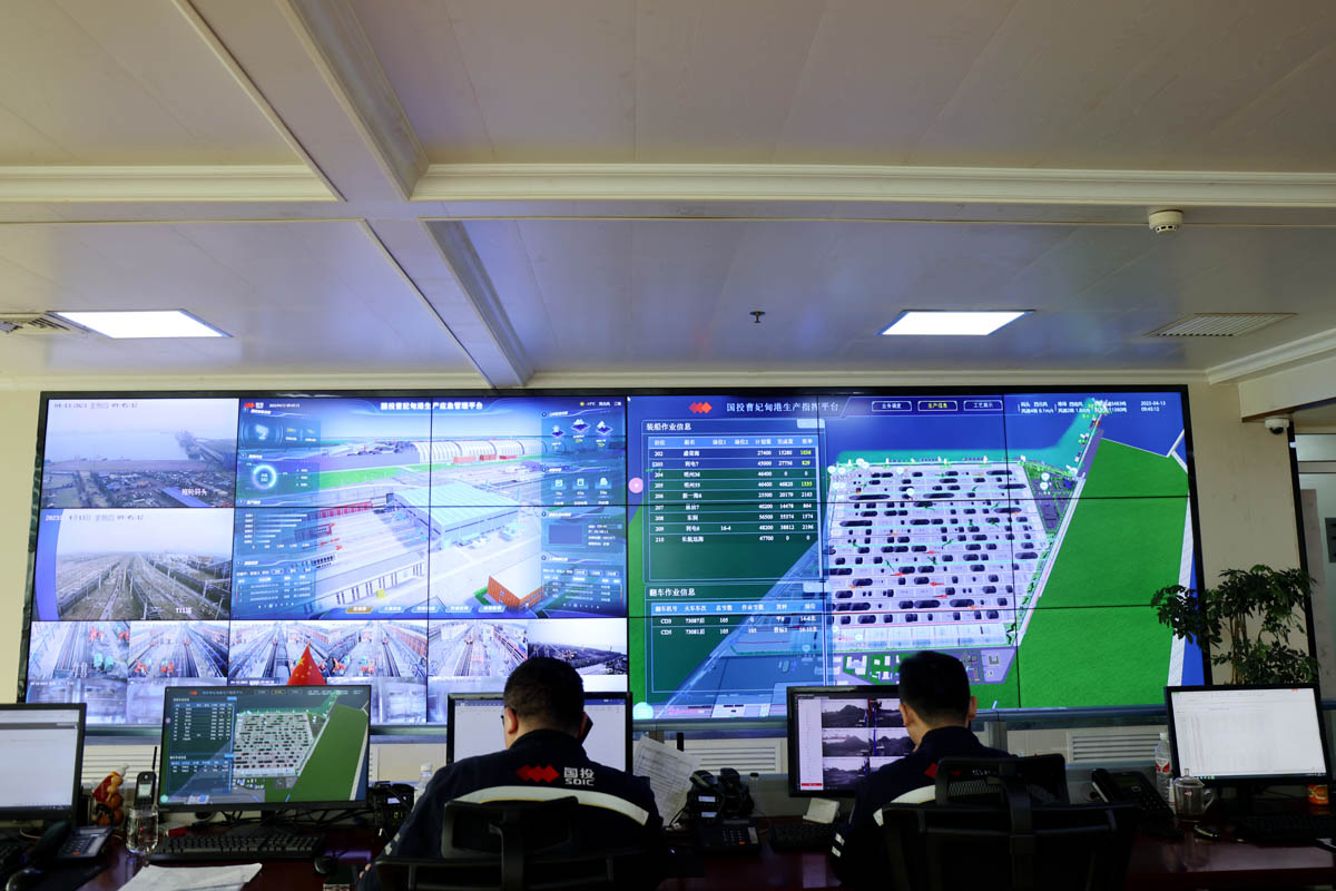 港口工作人员在后台调度。河北省自然资源厅供图