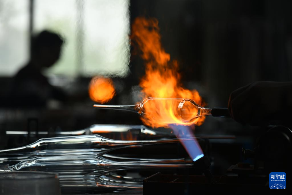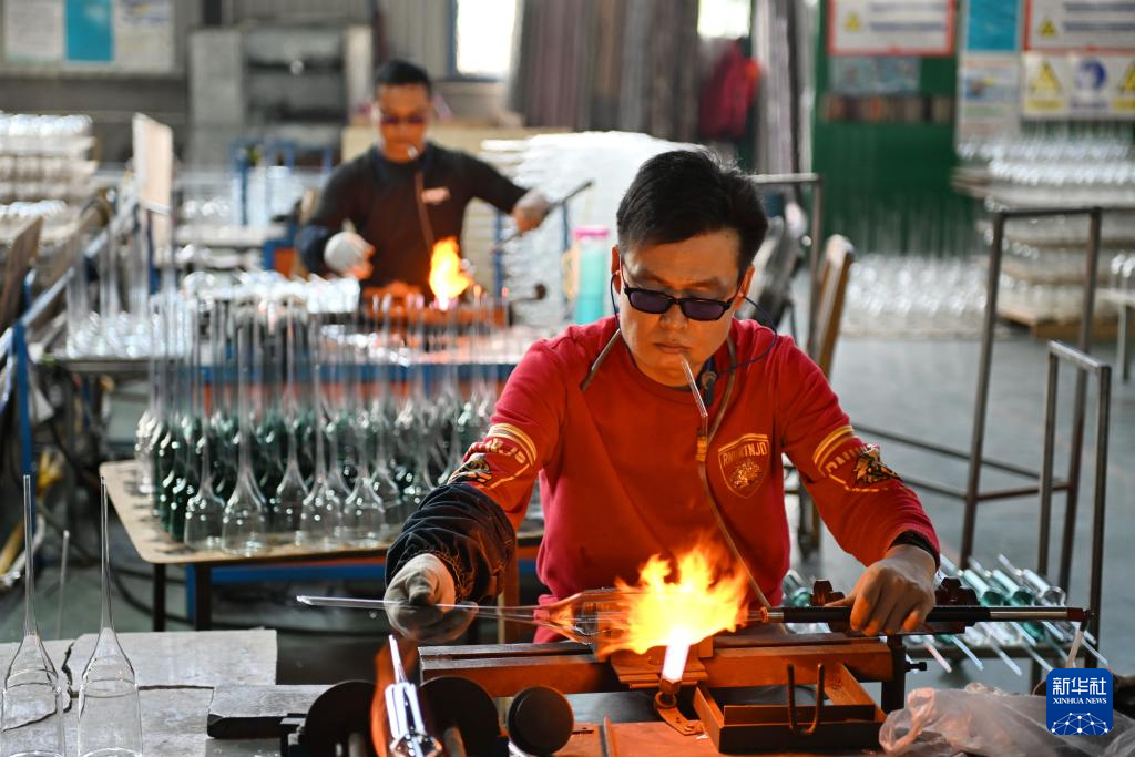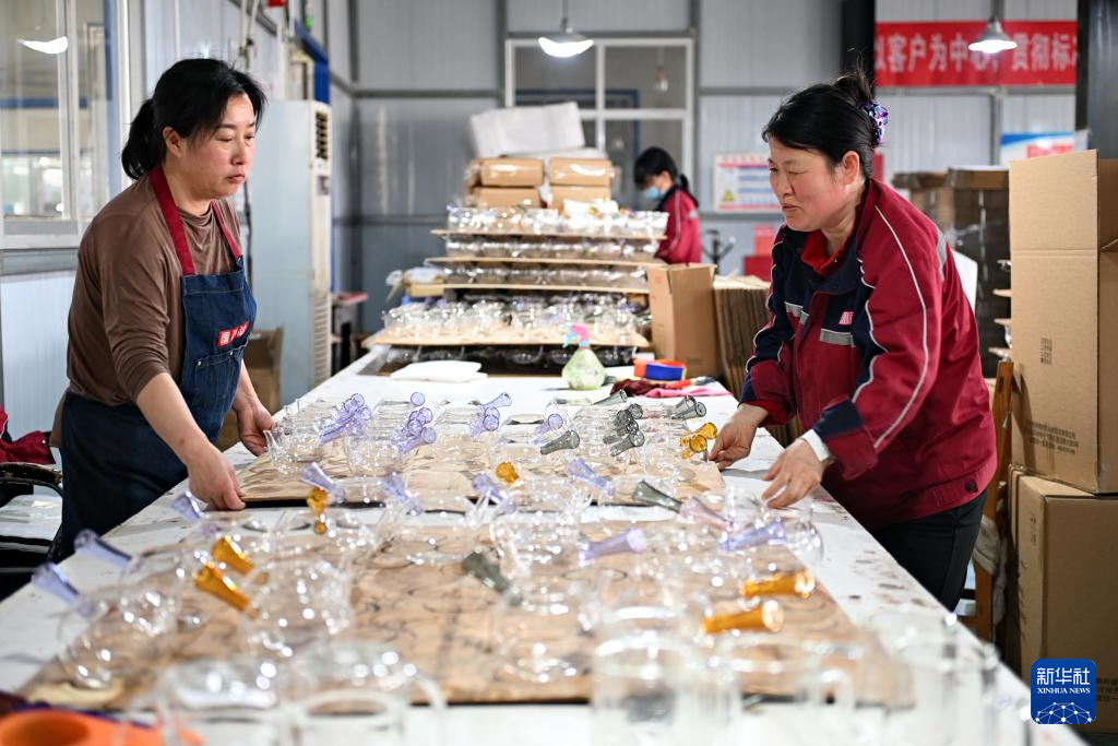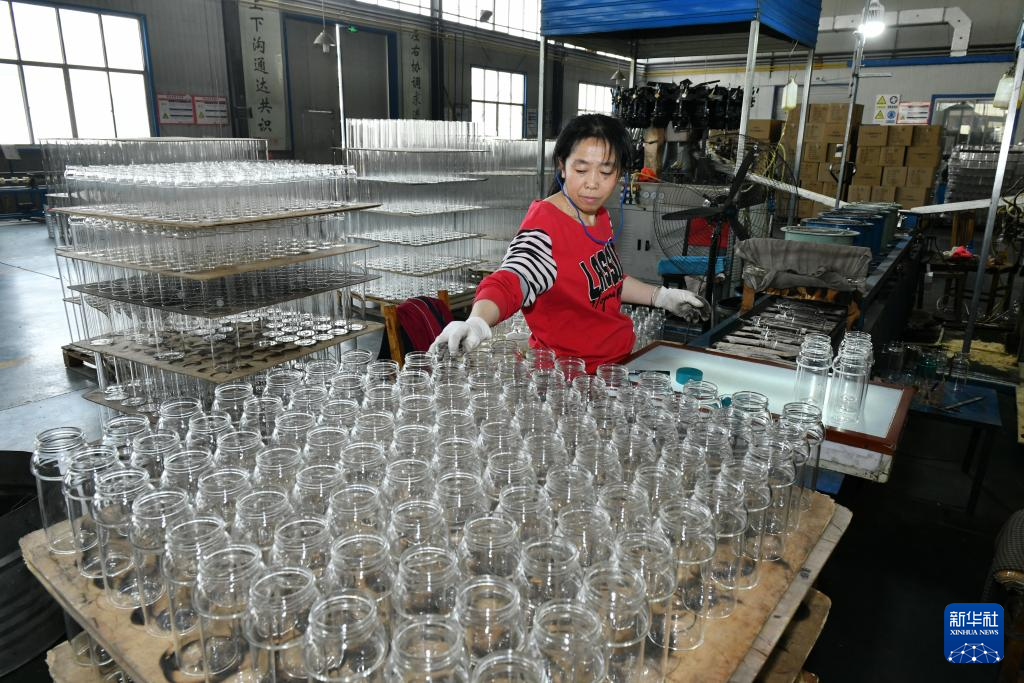 4月11日,在位于河间市的河北明尚德玻璃科技股份有限公司,工作人员在整理工艺玻璃制品。