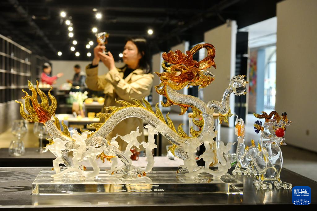 4月11日,在位于河间市的河北明尚德玻璃科技股份有限公司,顾客在选购工艺玻璃制品。