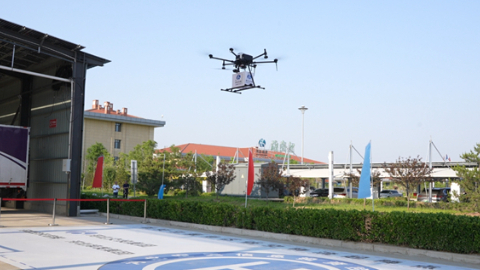 5月7日17时08分,满载货物的物流无人机精准降落在荣乌高速新线雄安北服务区分拨中心起降点,这也代表着河北省首条低空无人机物流运输航线试航成功。