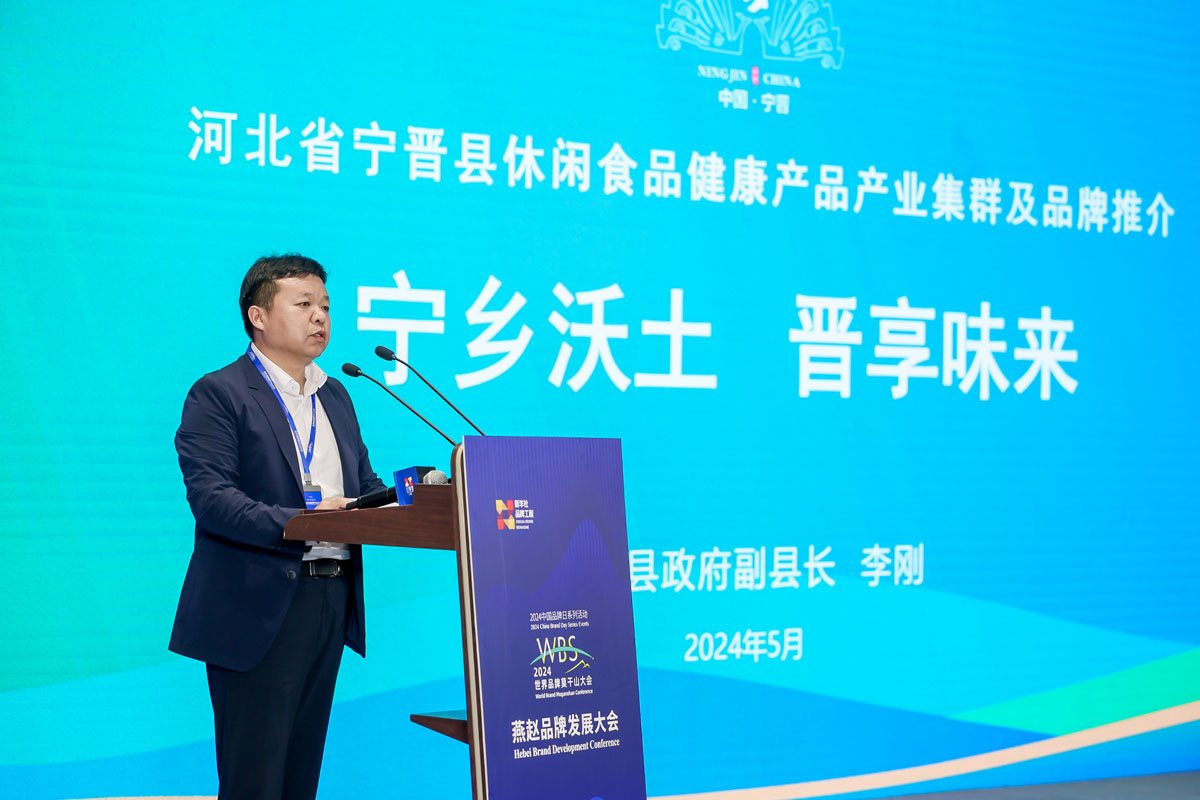 宁晋县人民政府副县长李刚在大会上作品牌推介。