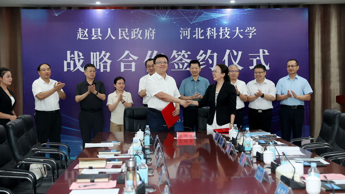 近日,石家庄市赵县人民政府与河北科技大学签署战略合作协议,深化县域校地合作。此次合作签约,双方将围绕“产学研成果转化、人才定向培育、科技攻关克难、科技项目孵化、创新创业人才培养”等核心任务,共同构建产学研一体化的创新模式,推动赵县产业开拓新空间、焕发新活力。