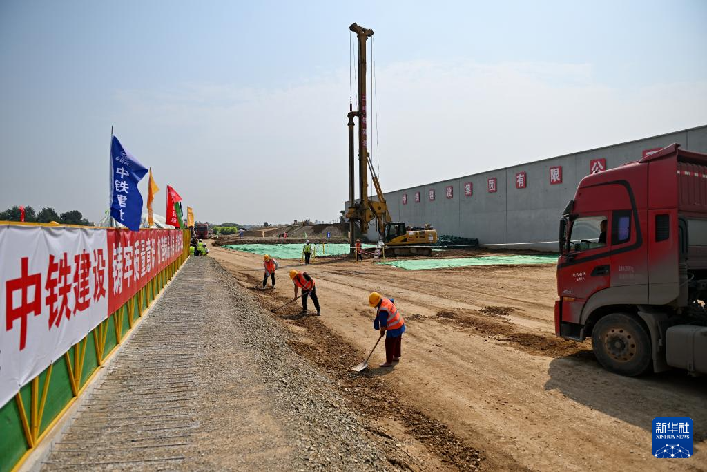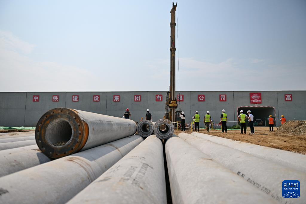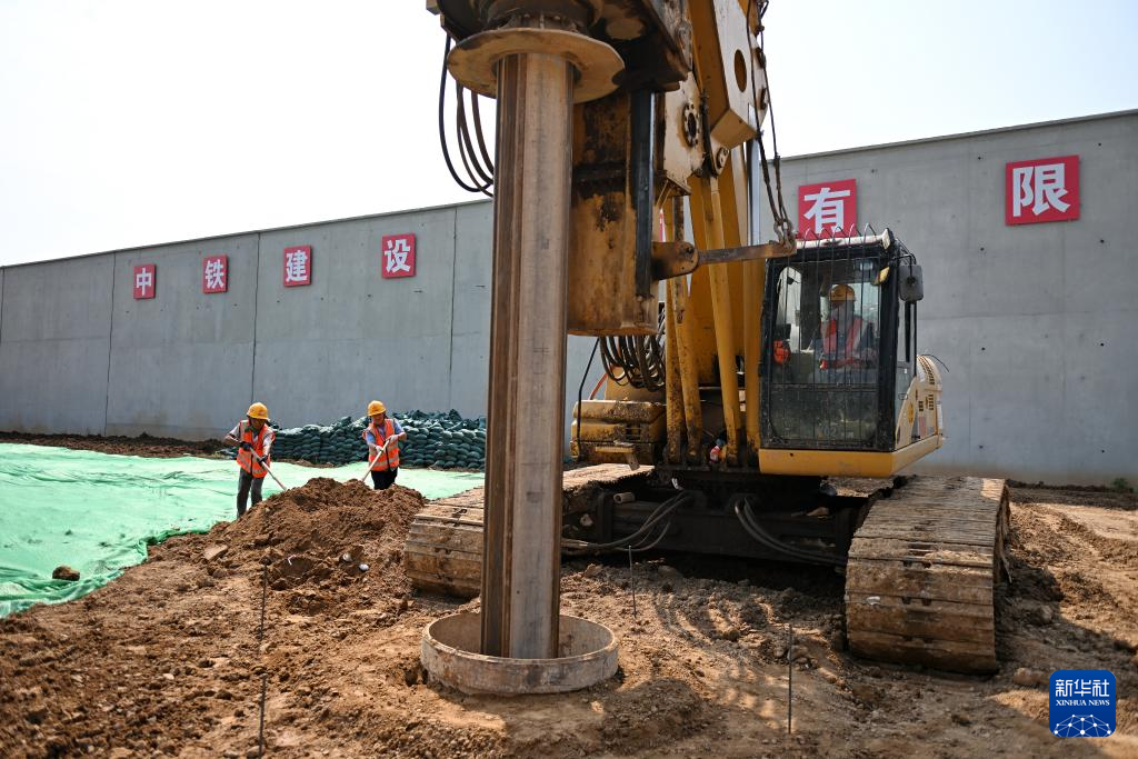 8月23日,中铁建设集团工人在雄忻高铁唐县站建设现场施工。