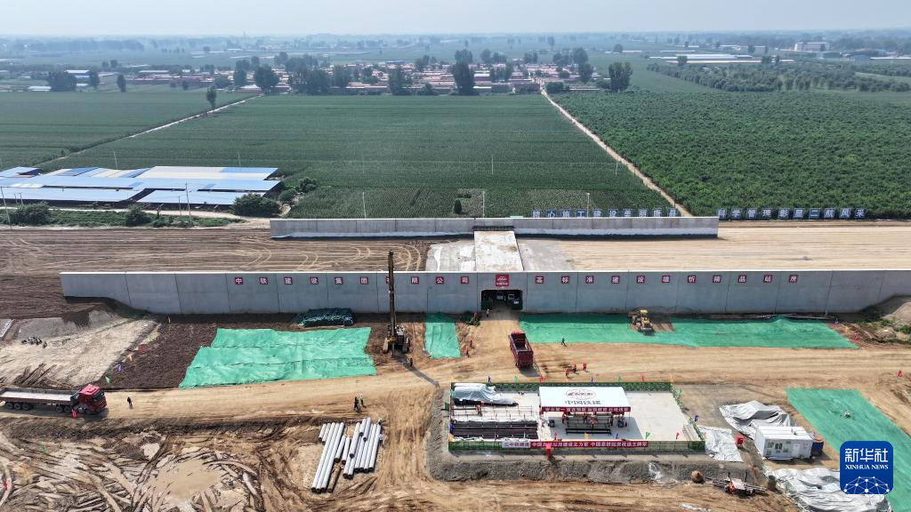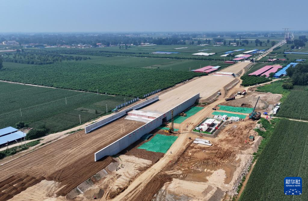 雄忻高铁唐县站建设现场(8月23日摄,无人机照片)。