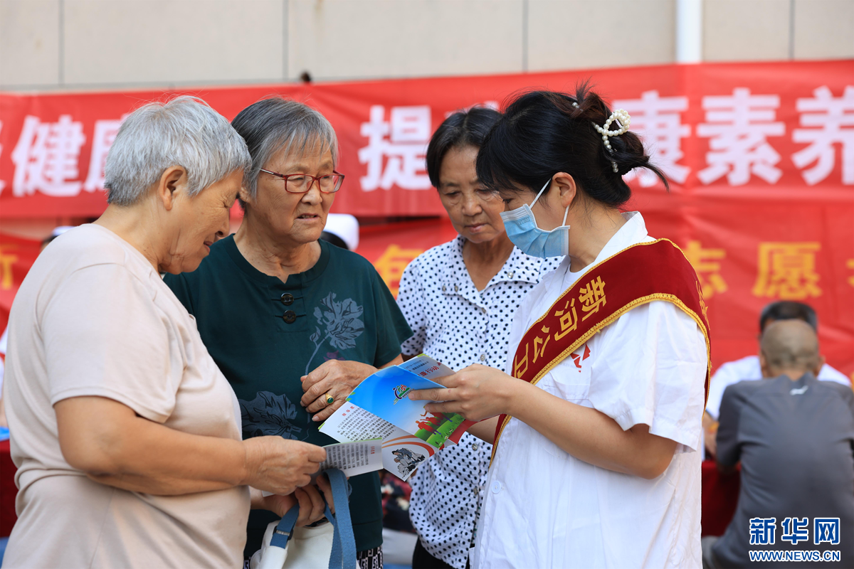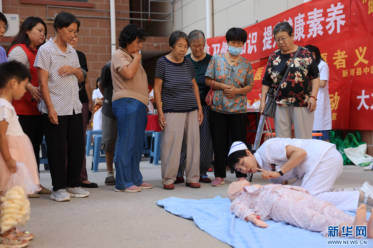 医护人员向居民讲解心肺复苏急救知识。新华网发 李世强 摄