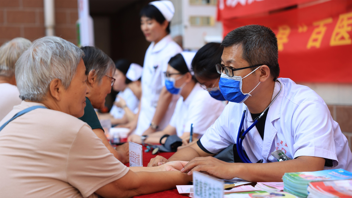 中医专家为居民把脉问诊。新华网发 李世强 摄