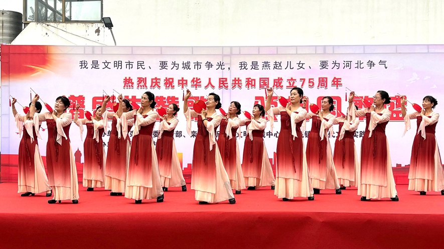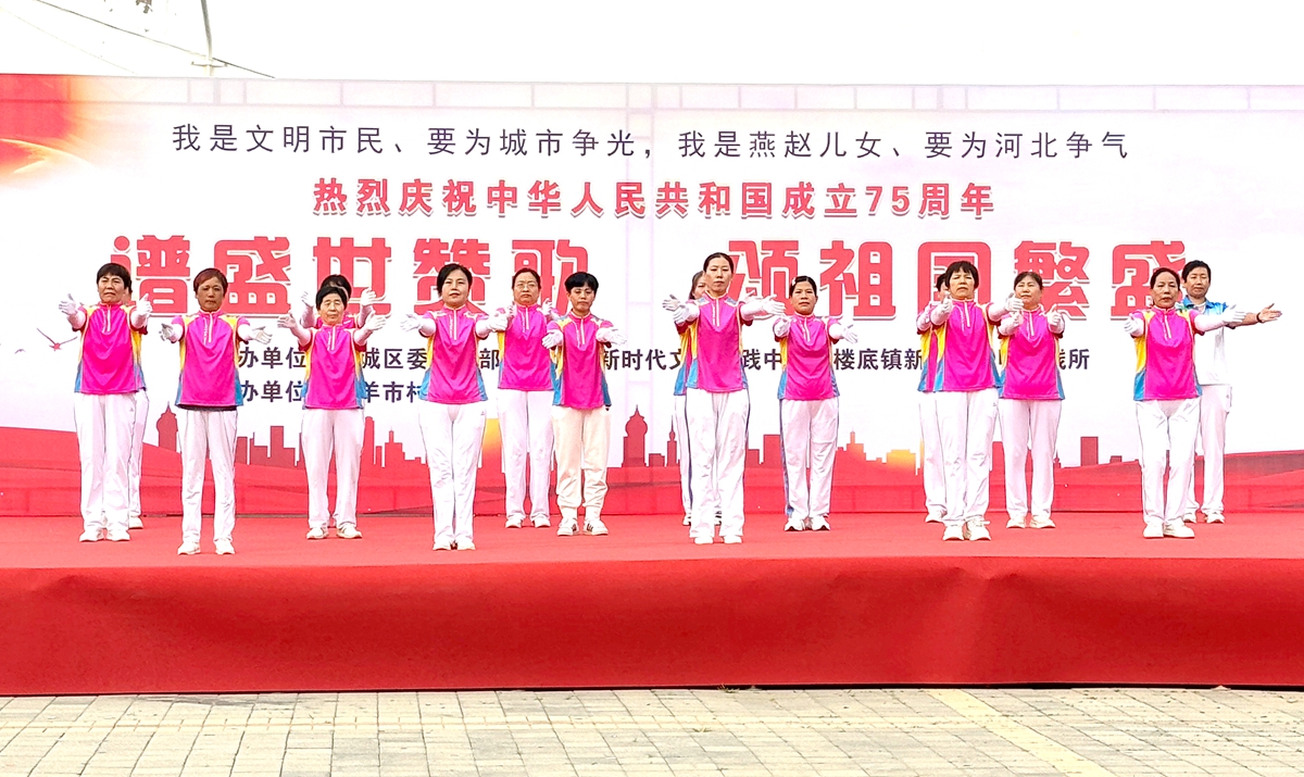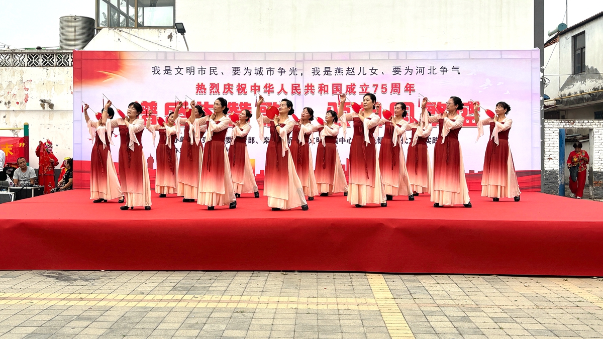 文艺汇演在隆隆鼓声中拉开帷幕,歌曲、舞蹈、太极拳、太极扇等节目依次上演。精彩纷呈的演出,生动展现了当地群众积极向上的风貌和昂扬奋进的精神状态,营造了举国欢庆、国泰民安的浓厚氛围。(石家庄市栾城区委宣传部供稿)
