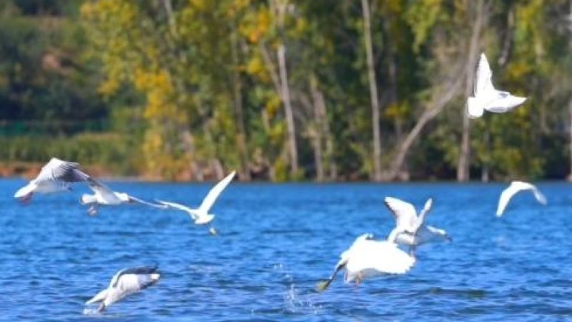 金秋十月,河北省阜平县倪家洼水域上空飞来数百只海鸥翩然飞舞,形成靓丽风景,众多游客打卡观赏。近年来,阜平县不断加大湿地生物多样性保护力度,促进生态系统高质量可持续发展,随着生态环境持续向好,倪家洼水域水生植物日益丰茂,水中鱼虾种类渐多,吸引大批候鸟前来栖息觅食。(作者:王玉国、周丽丽)