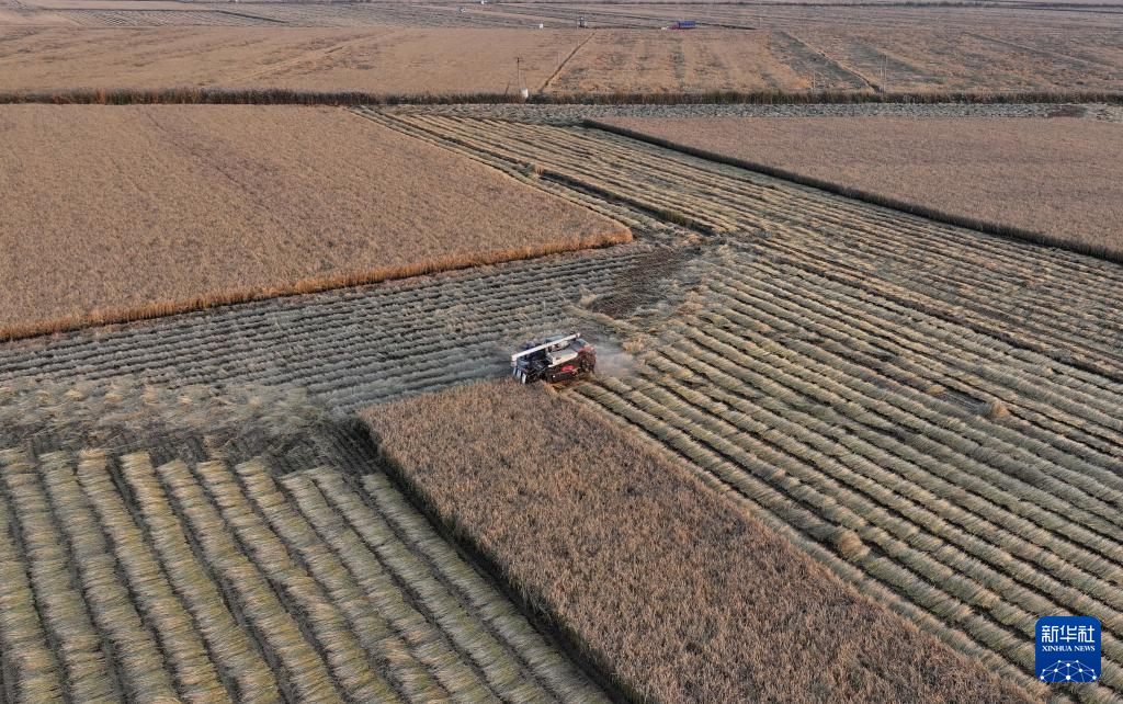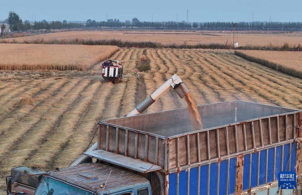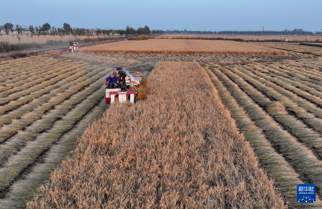 近日,河北省唐山市的水稻迎来收获季节,农民抢抓农时,确保颗粒归仓。