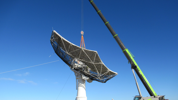 中国电科网通院工程技术人员在南非SKA台址装配射电望远镜天线。中国电科网通院供图
