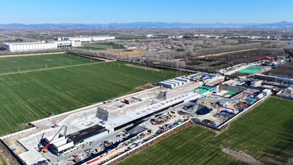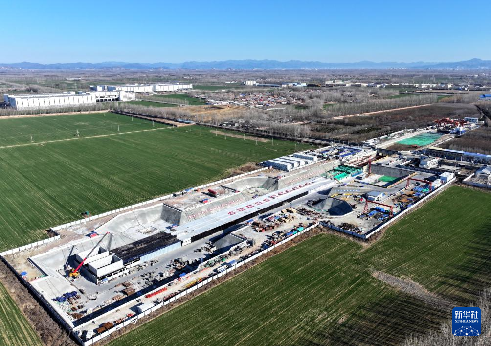 12月9日拍摄的北京轨道交通22号线(平谷线)河北段高楼站建设现场(无人机照片)。