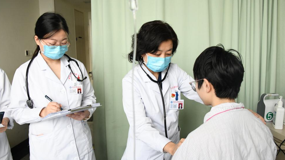 图为河北大学附属医院呼吸与危重症医学科主任李峥(右二)为患者诊疗。新华社发