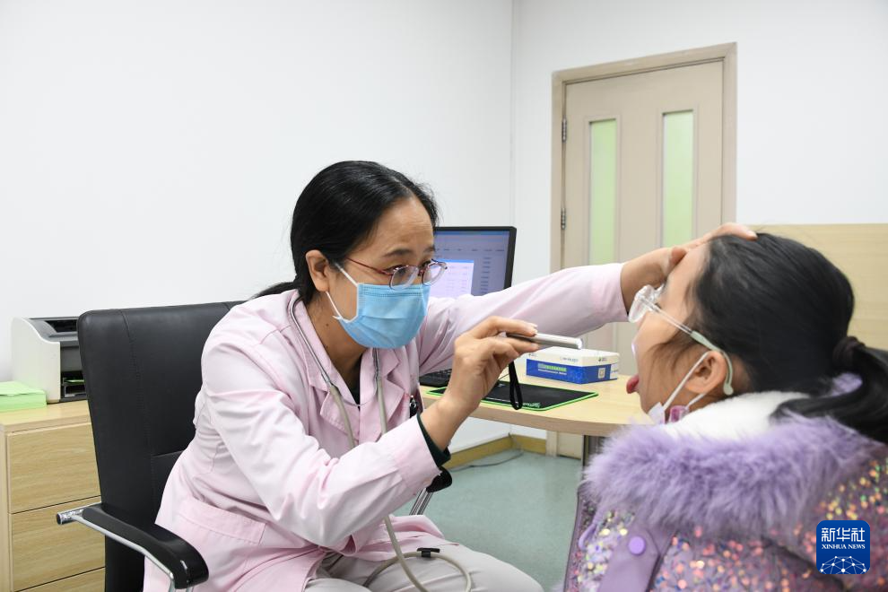 图为河北大学附属医院儿科主任柏金秀为患儿查体。新华社发