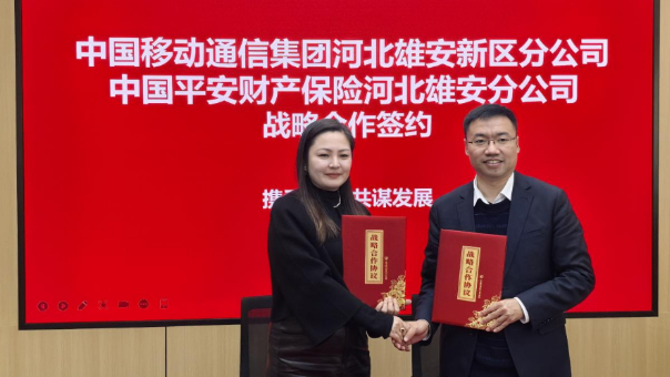 近日,中国移动通信集团河北雄安新区分公司与中国平安财产保险股份有限公司河北雄安分公司举行战略合作签约仪式。本次签约涵盖四大合作领域,推出21项具体举措,包括通信信息技术服务、保险和健康服务、联合营销创新以及客户服务等。