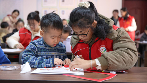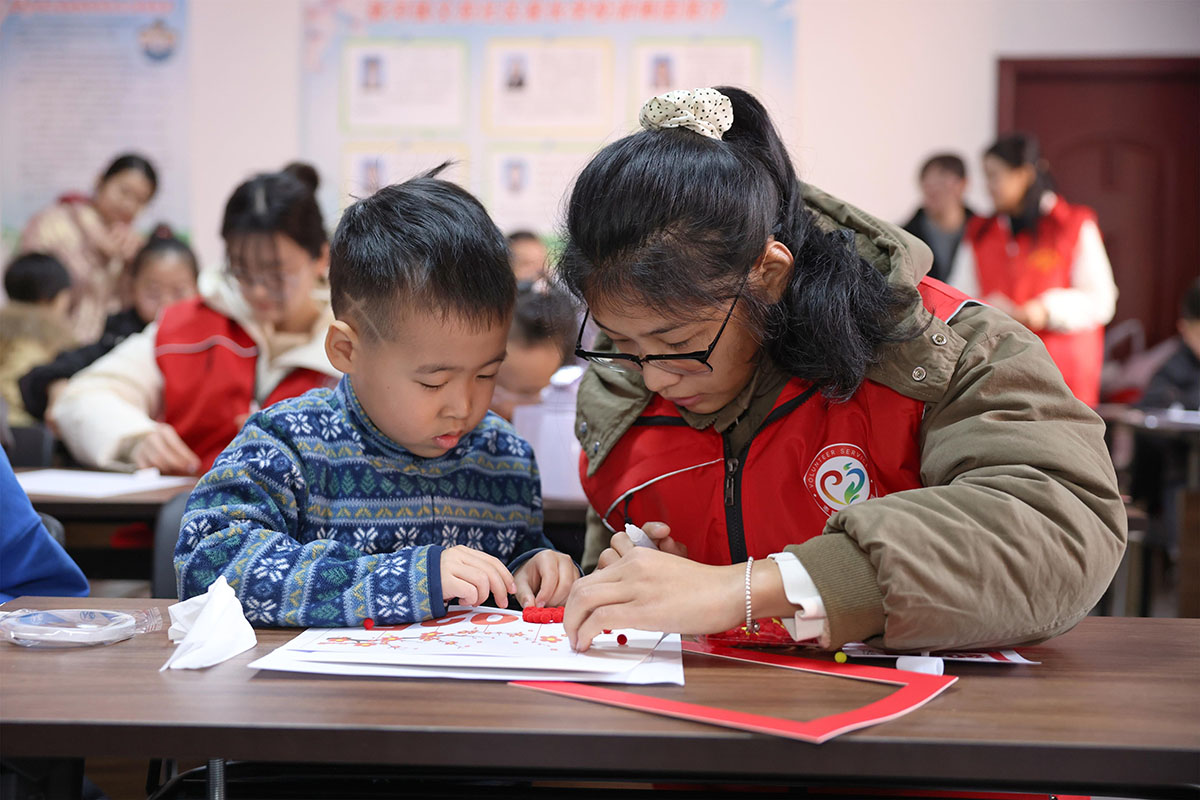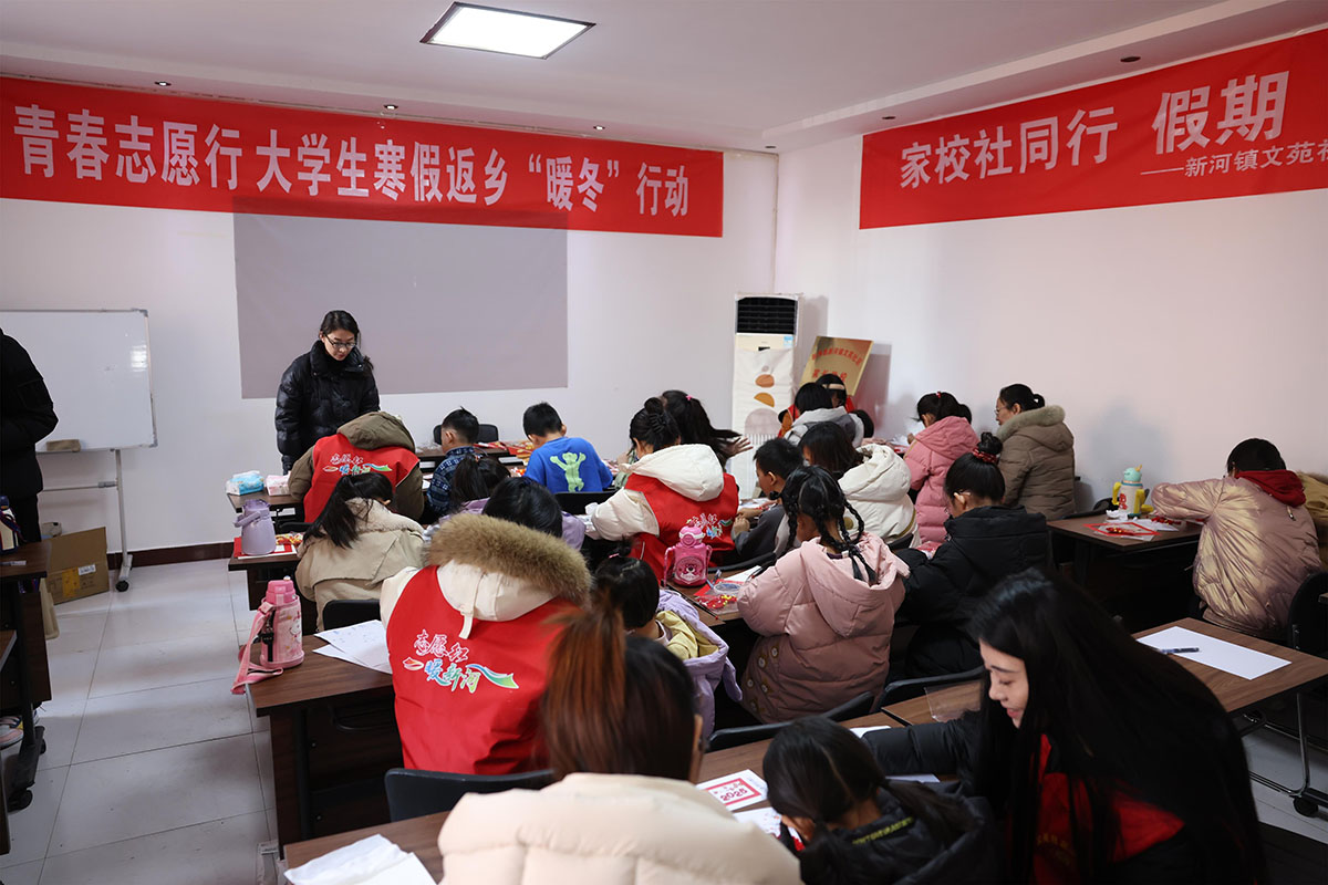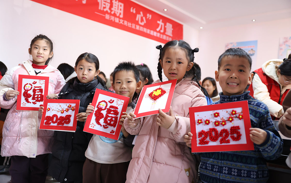 为丰富儿童寒假生活,河北新河县委社会工作部联合团县委组织返乡大学生志愿者走进社区,开展“温暖童心、多彩假期”志愿服务活动,陪伴孩子们度过充实、快乐的假期。(李世强 新河县融媒体中心供稿)