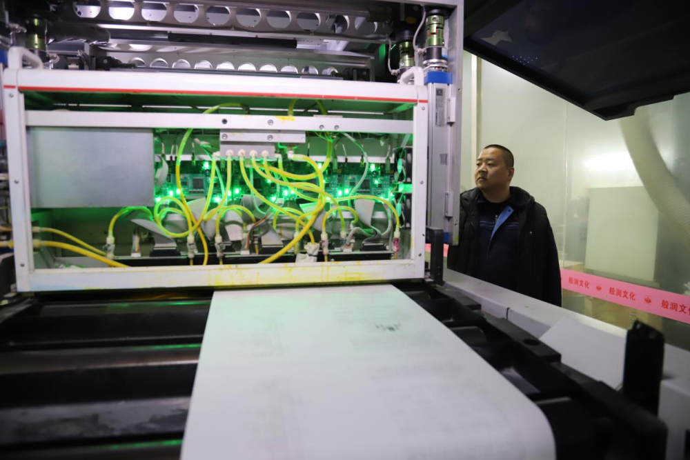 ↑2月24日,在涿州市京南印刷厂,工人在操作数码印刷机。