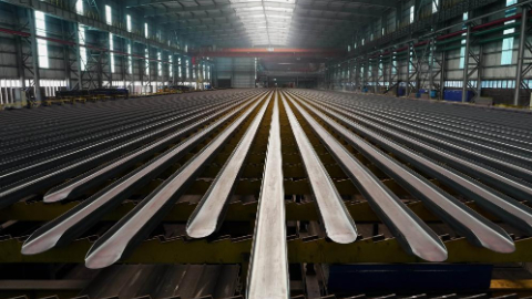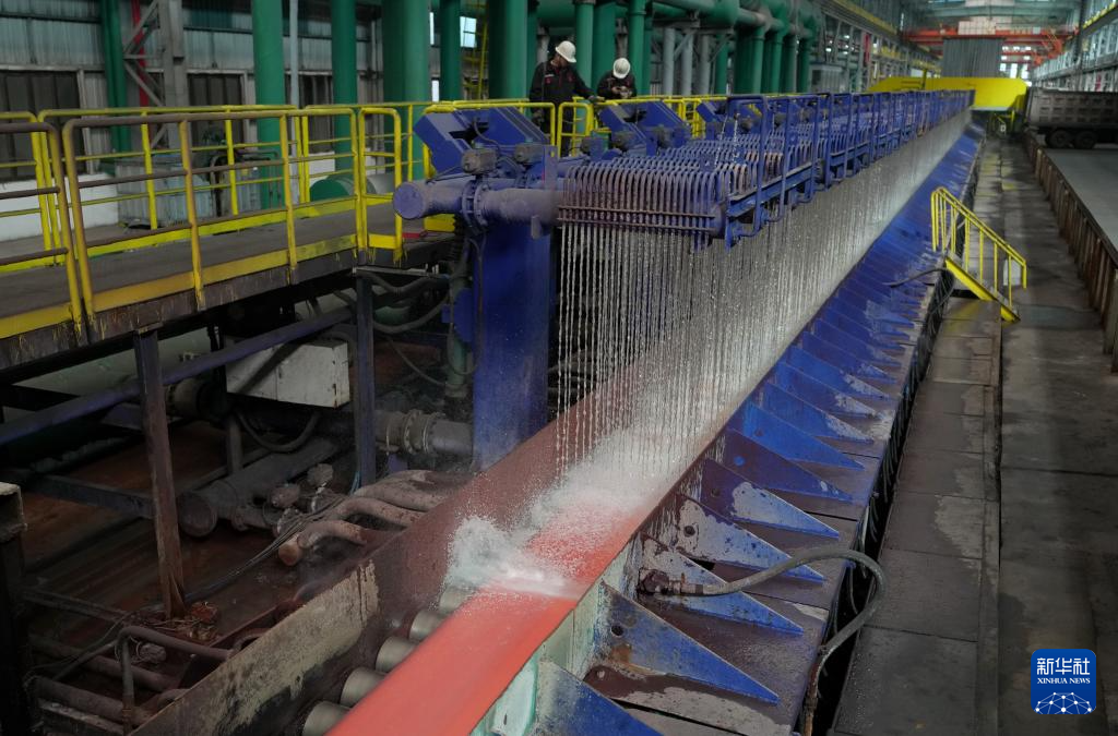 这是唐山市海港经济开发区一家钢铁企业刚轧制出炉的槽型钢(3月24日摄)。
