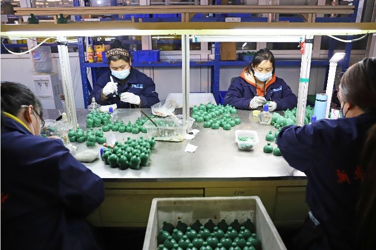 ↑3月24日,在涿州新卓立航空精密科技公司生产车间内,工人在生产人工关节毛坯模具。