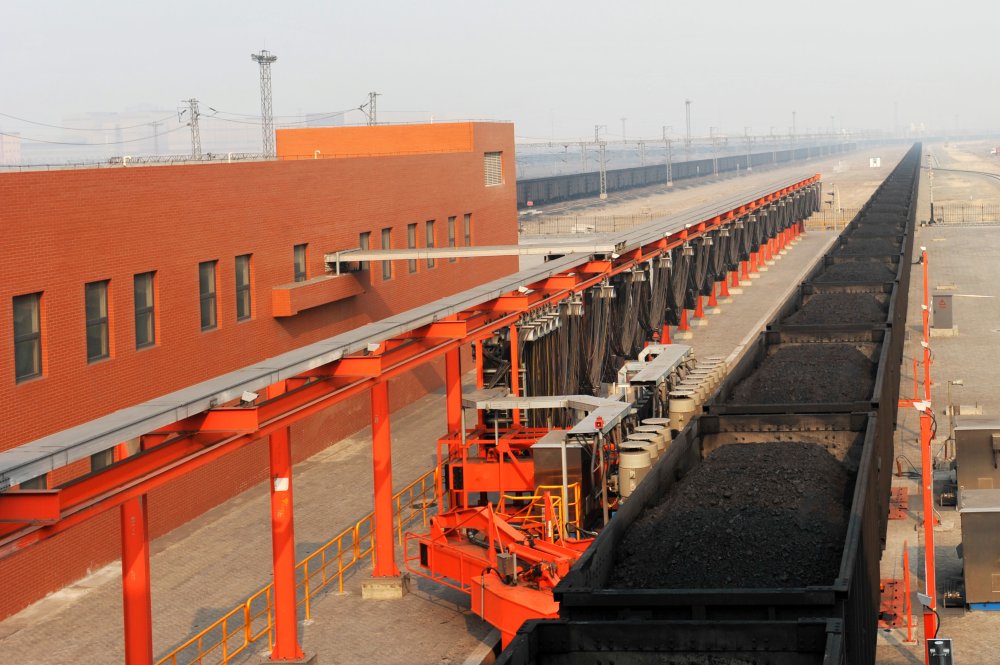 ↑4月30日,在曹妃甸港的电煤列车准备卸车。(闫洪峰 摄)
