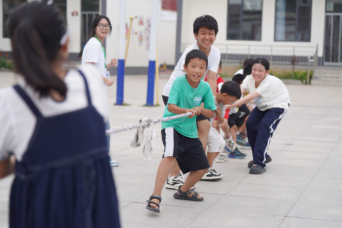 志愿者和孩子们一起进行拔河比赛。刘继东 摄