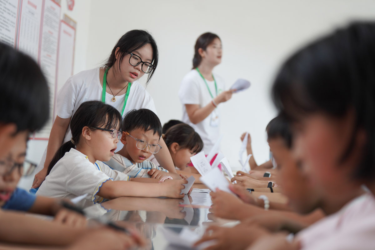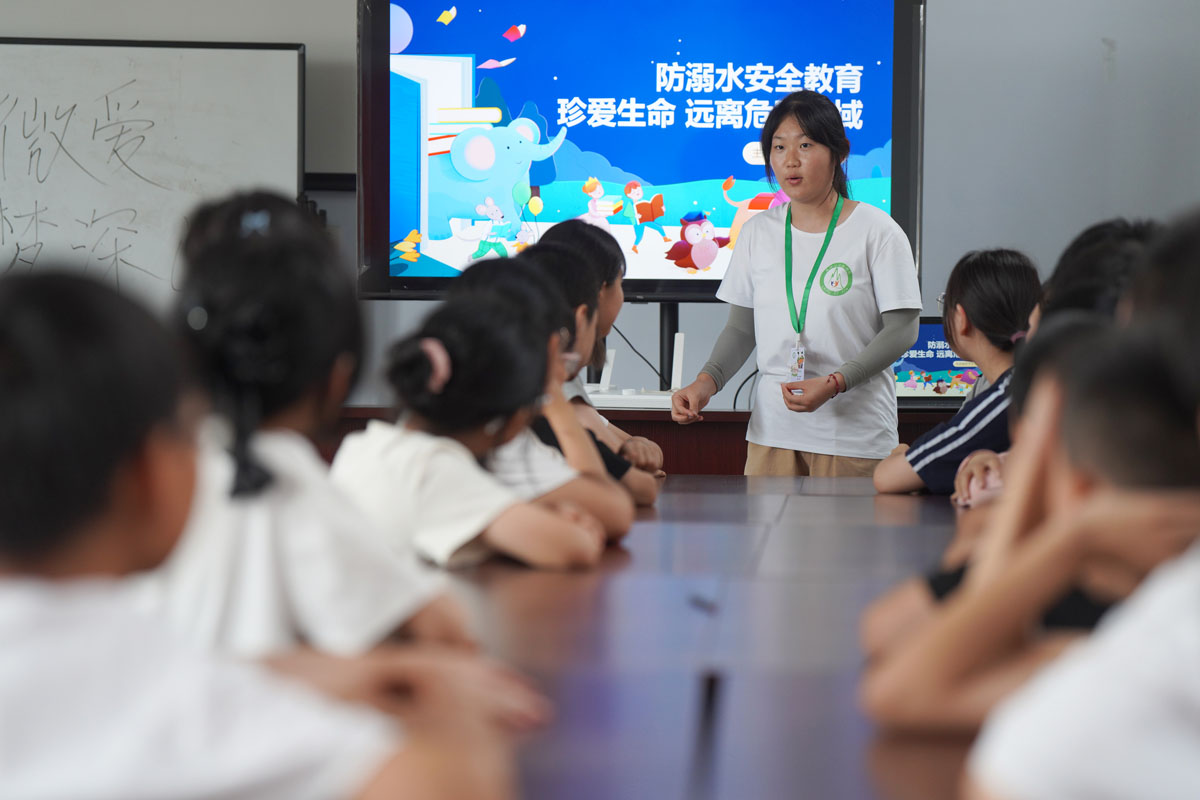 志愿者给孩子们讲解防溺水知识。刘继东 摄