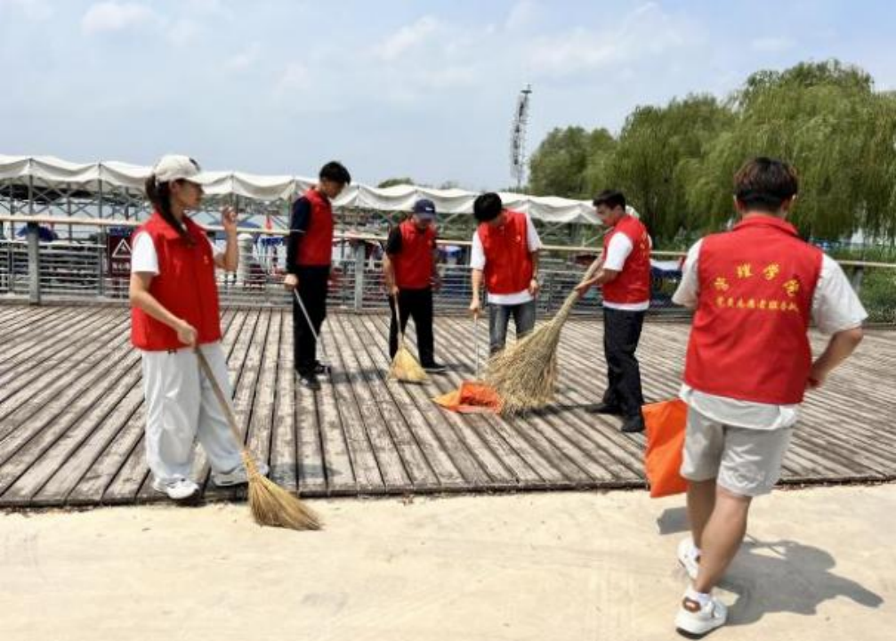 实践团在白洋淀景区向游客宣讲文明旅游规范,呼吁大家共同守护湿地;走进村民家中,用通俗案例解读湿地保护的生态价值;在淀区街道清理垃圾并分类处理。