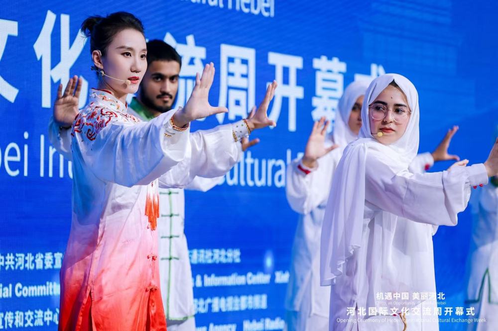 马兰花儿童声合唱团以《奥林匹克颂》《月亮舞台》歌曲为活动拉开了序幕。随后,太极拳表演《行云流水》、河北梆子《赵子龙》选段等具有河北特色的传统文化表演先后登场,赢得阵阵掌声。来自河北大学国际交流与教育学院的留学生表演了《孙式太极》,展现了对中华传统文化的喜爱和研习成果。