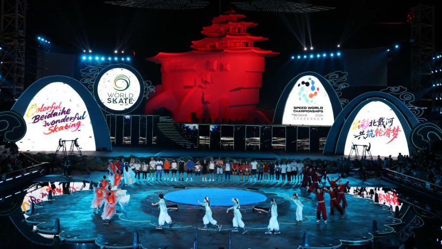 当日,2025年世界速度轮滑锦标赛开幕式在河北省秦皇岛市北戴河区举行。本次赛事将于9月13日至21日举行,设场地赛、公路赛和轮滑马拉松三个大项。